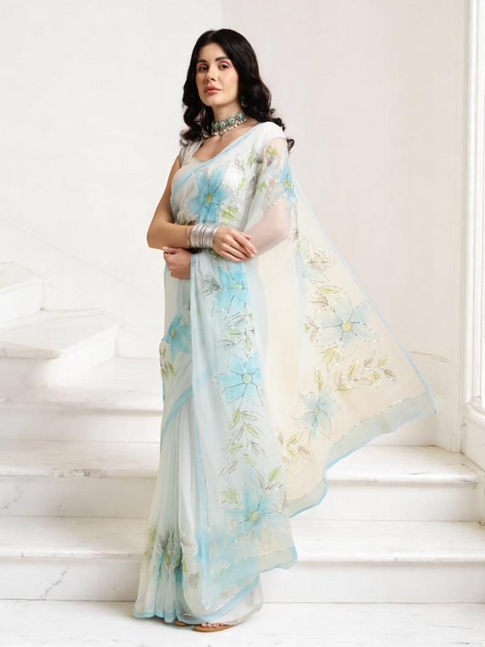 Hand Painted Pearl Saree